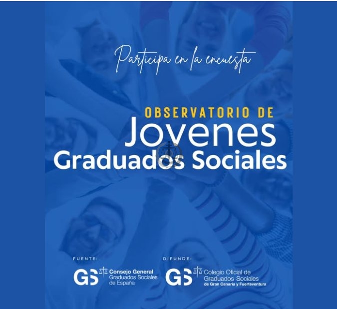 El Consejo General de Graduados Sociales de España ha puesto en marcha el Observatorio de Jóvenes Graduados Sociales, una iniciativa orientada a impulsar acciones que favorezcan una mayor integración, participación y conexión entre los y las profesionales menores de 35 años. Desde el Colegio Oficial de Graduados Sociales de Gran Canaria y Fuerteventura nos sumamos activamente a este proyecto y animamos a nuestros colegiados y colegiadas jóvenes a participar en una breve encuesta. No te llevará más de 5 minutos Tus aportaciones permitirán proponer acciones reales en un futuro cercano Tu opinión es clave para seguir fortaleciendo la profesión El enlace a la encuesta ha sido remitido a tu correo electrónico. Participa, suma tu voz y forma parte activa del futuro de la profesión.