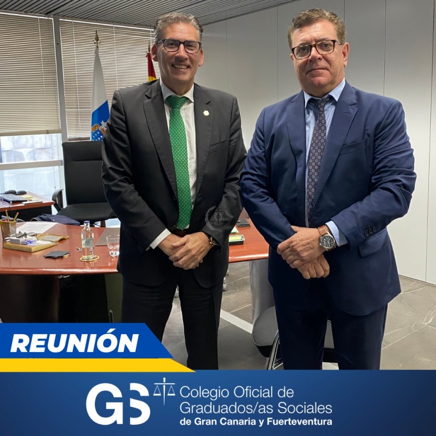 El presidente del Colegio, Fermín Ojeda, ha mantenido una reunión de trabajo con el director general de Relaciones con la Administración de Justicia del Gobierno de Canarias, Francisco J. Ledesma de Taoro. En el encuentro, que sirvió de toma de contacto, el presidente informó a Ledesma de la actividad del colectivo de Graduados Sociales, así como de los proyectos que el Colegio está desarrollando en la actualidad y los que están programados para los próximos meses.